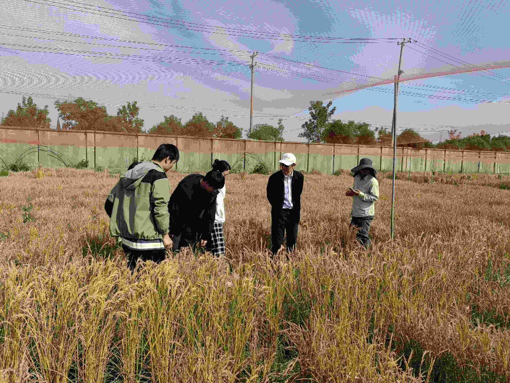 陳曉亞院士(右二)觀察水稻新種質。受訪者供圖