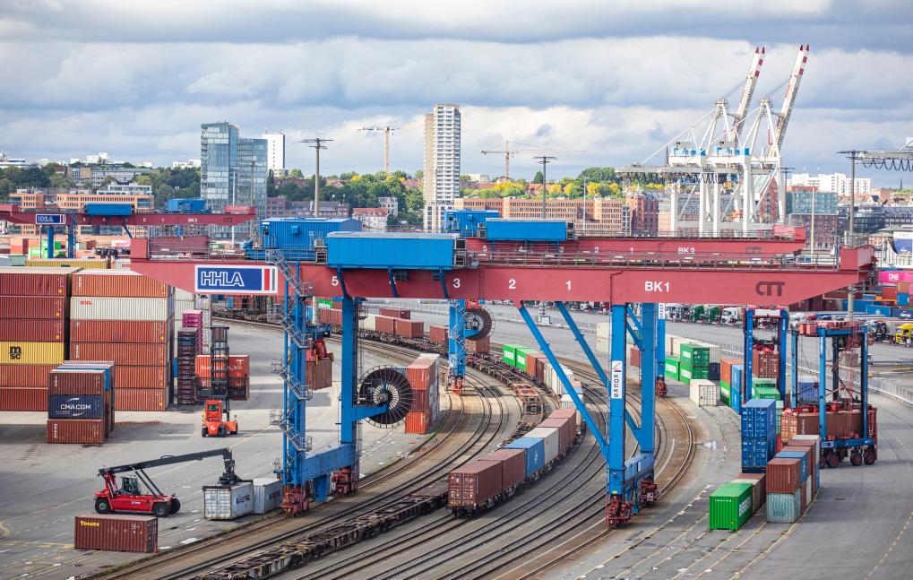 ??這是5月28日拍攝的德國漢堡港口與物流股份公司旗下漢堡港CTT集裝箱碼頭景象。新華社記者張帆攝