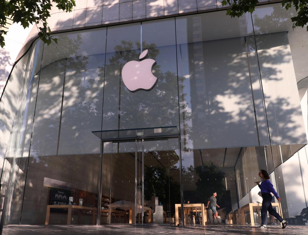 ??這是5月23日在比利時(shí)布魯塞爾拍攝的一家蘋果門店。新華社記者趙丁喆攝